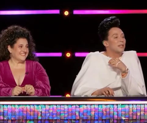 Olympic skater Johnny Weir sits on the dais in women’s couture. The camera adores feathers, shimmer, mesh, and drag aesthetics. The host is pop-friendly. The tone is frothy, safe, marketable. The message is to bring your kids to be catechised by choreography.