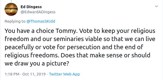 Yet, Thomas Kidd, a research fellow at the Southern Baptist Ethics and Religious Liberty Commission says he's okay with it.