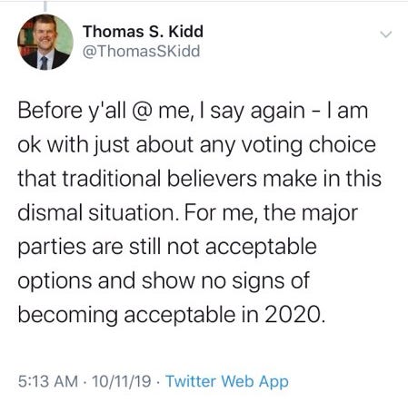 Thomas Kidd, a Baylor University professor and highly sought after speaker and author for The Gospel Coalition follows in the footsteps of SBC president, J.D. Greear who said he thought it was "great" if a Christian wanted to vote Democrat so long as they give lip service to pro-life causes.