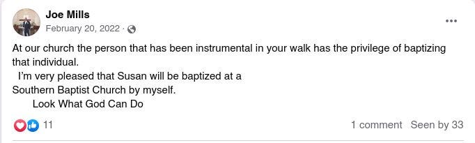 It's unclear if this is the person he mentioned in his social media post, however, it is certain that Joe Mills is clearly open about his homosexuality, living in unrepentant sin, and is not only being baptized despite this, but also openly baptizing other people at First Baptist Church Orlando.