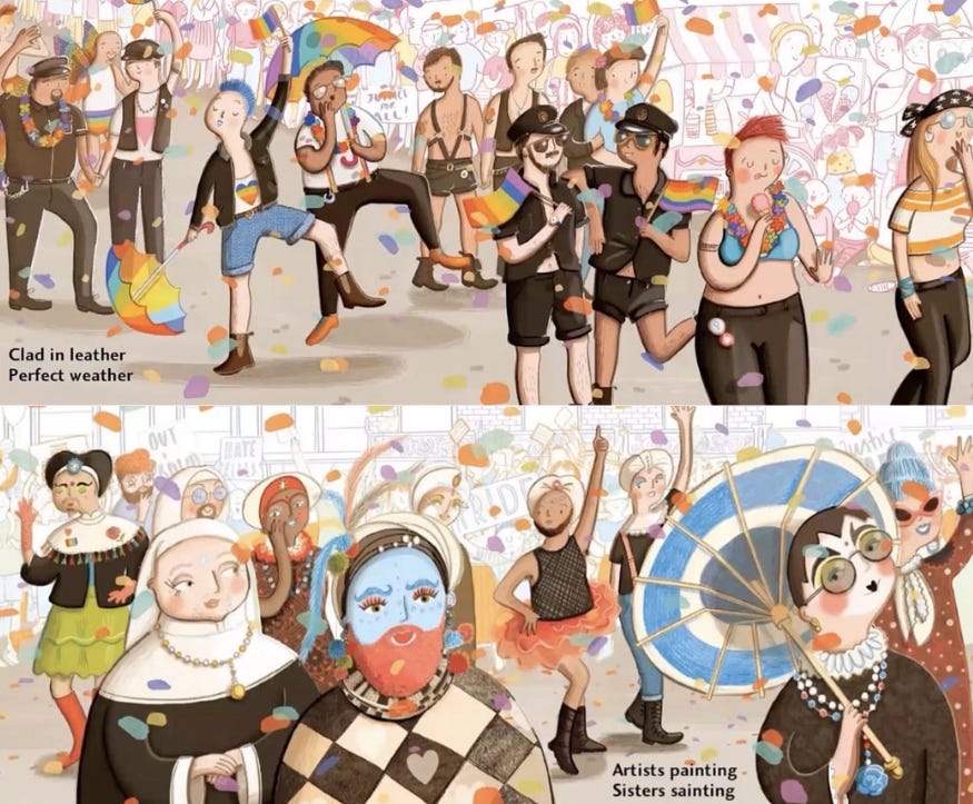 There was a time when “story time” meant The Very Hungry Caterpillar or Goodnight Moon. But in Lexington, Massachusetts, it now means This Day in June—a picture book that invites five-year-olds to a Pride parade filled with drag performers dressed as nuns and men in leather harnesses.
