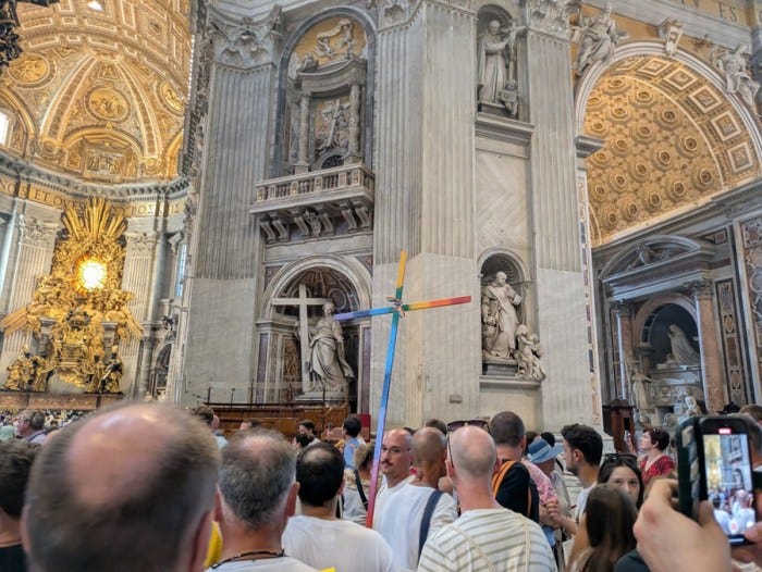 They say all roads lead to Rome—and apparently, one of them is now a rainbow-paved freeway from Hell. This weekend, that road ended at St. Peter’s Basilica, where the world’s most famous cathedral became a parade ground.